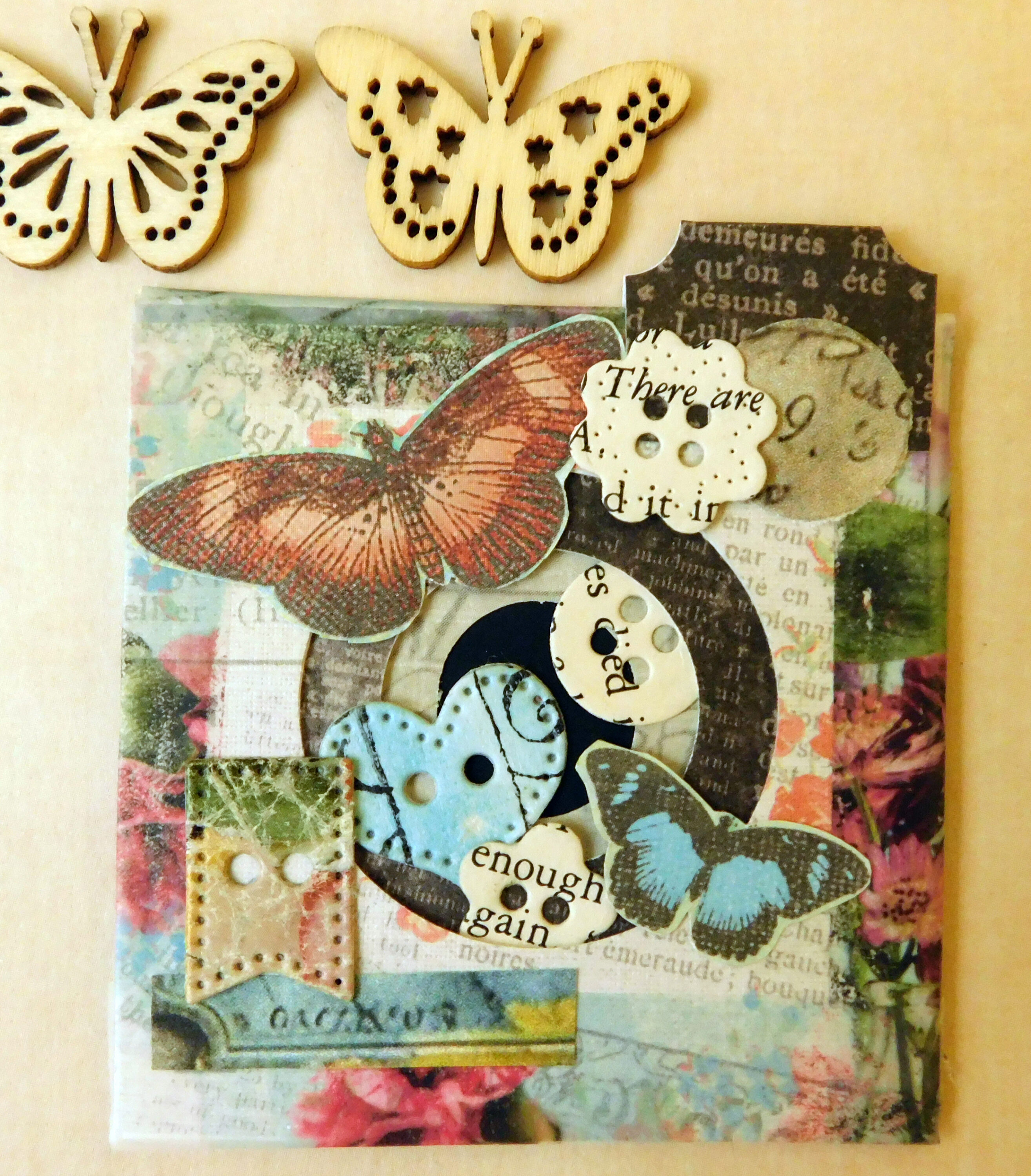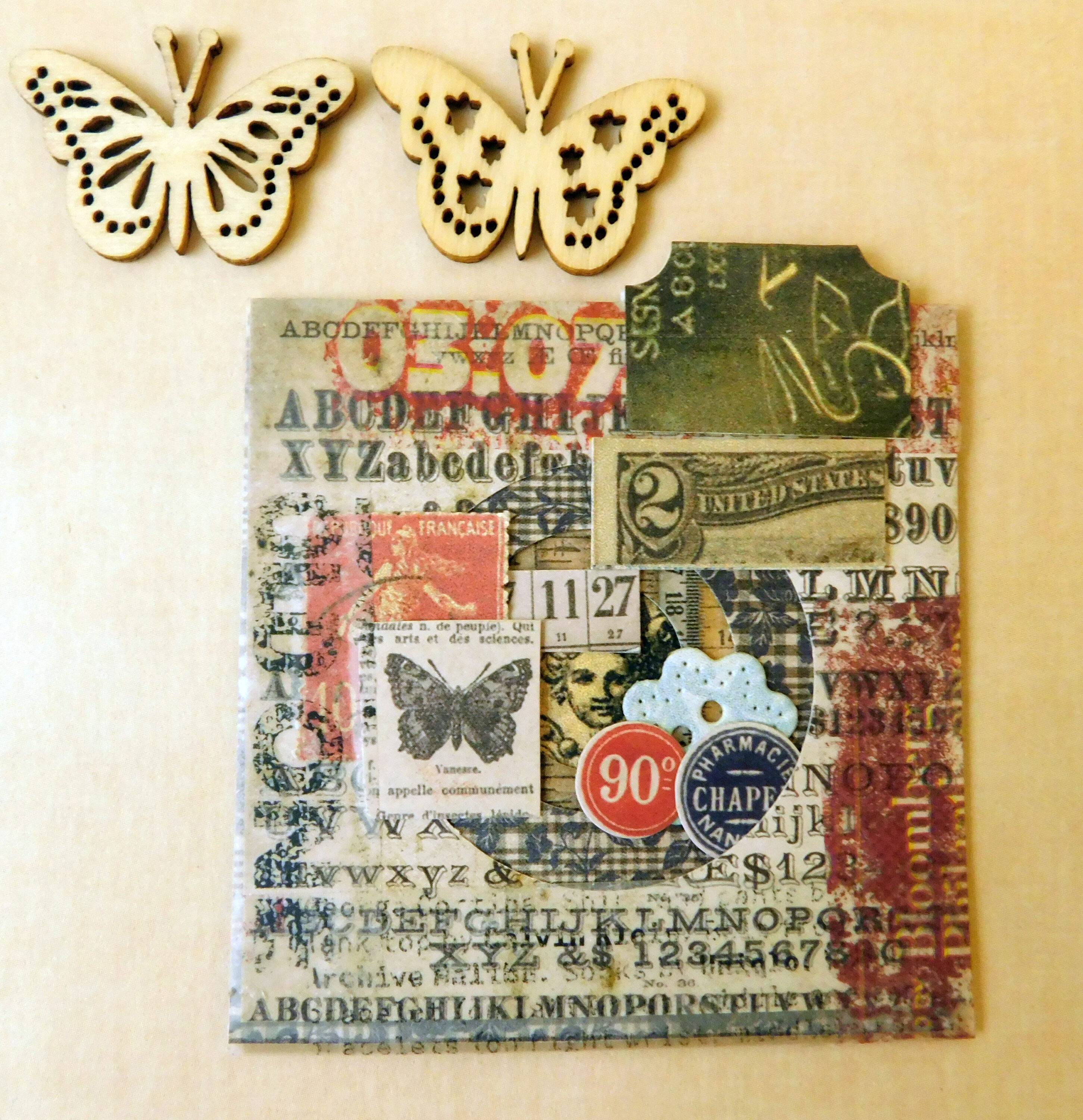 Tim Holtz paper and ephemera. The papers don’t have enough contrast between each layer to really demonstrate the tunnel effect.