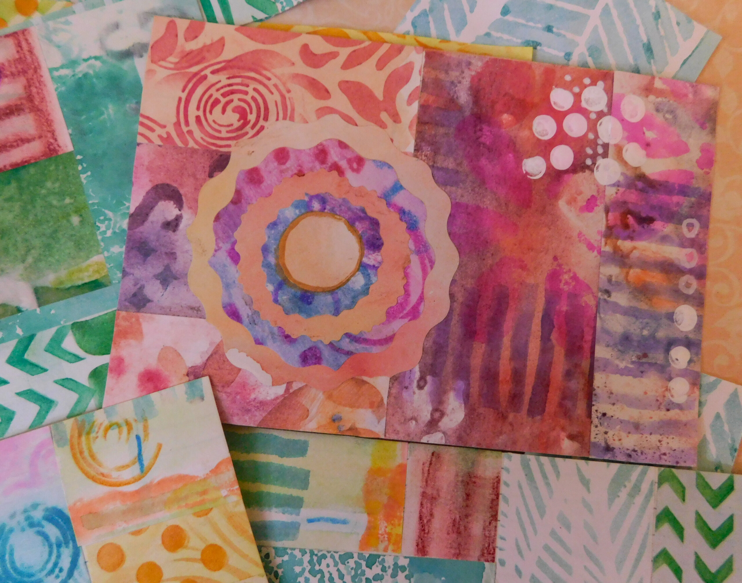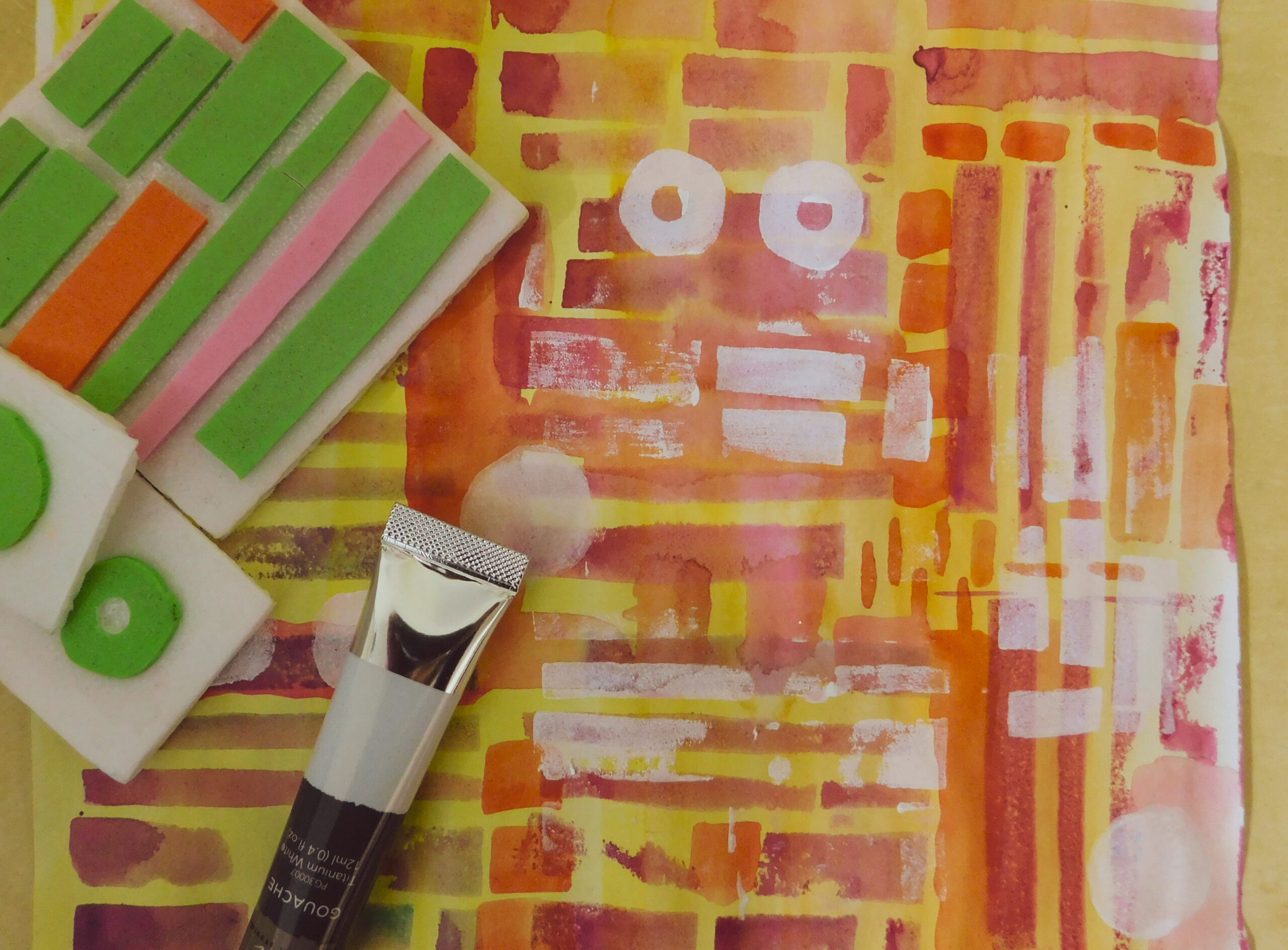 Doodle Stamps Grab some adhesive foam scraps, foam board, a dull pencil, some inexpensive gouache, other media of your choice