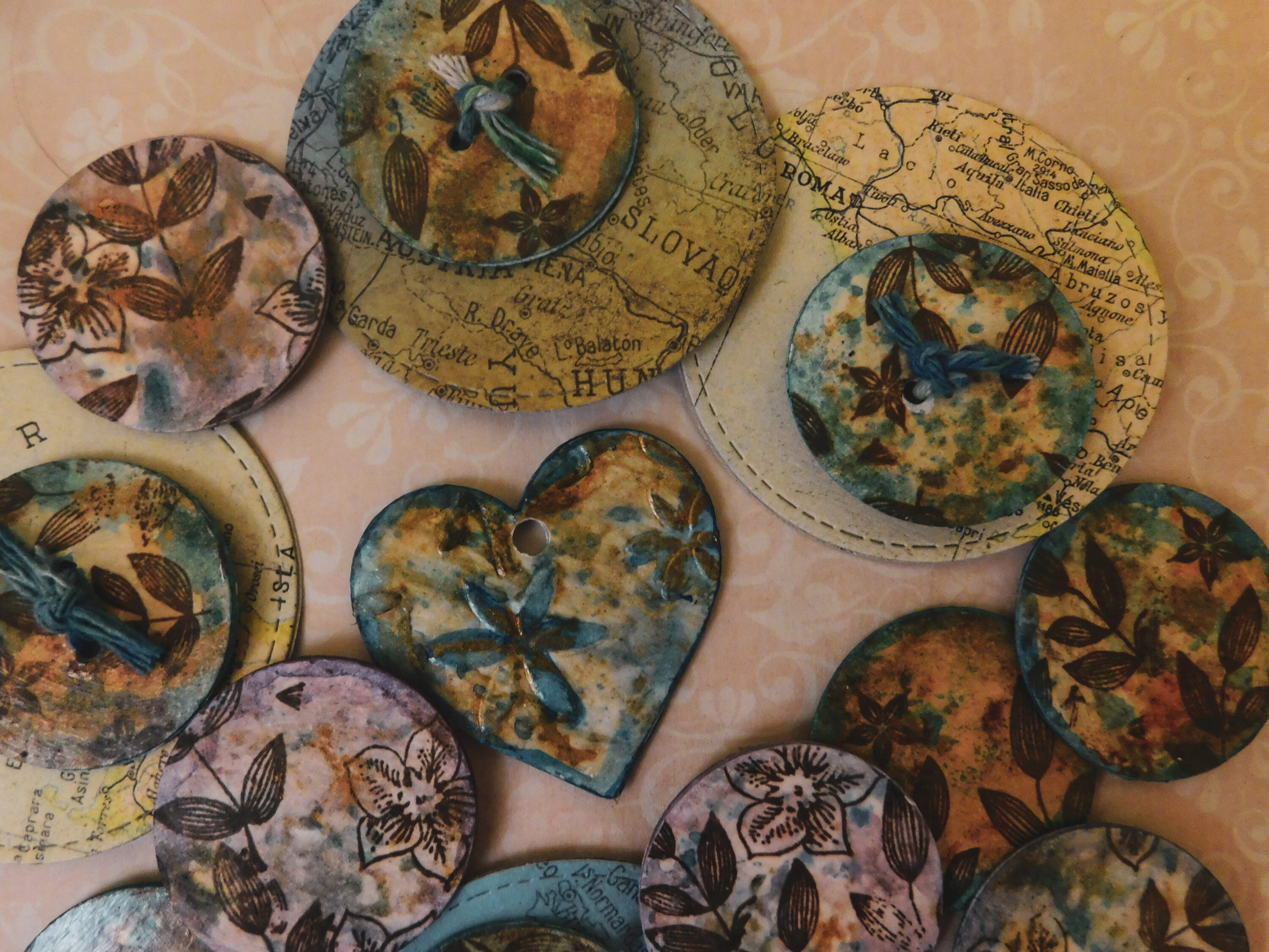 Buttons and Hearts Embellishments Paper buttons offer endless possibility for creativity. These embellishments were inspired by eclectic style jeweled brooches.