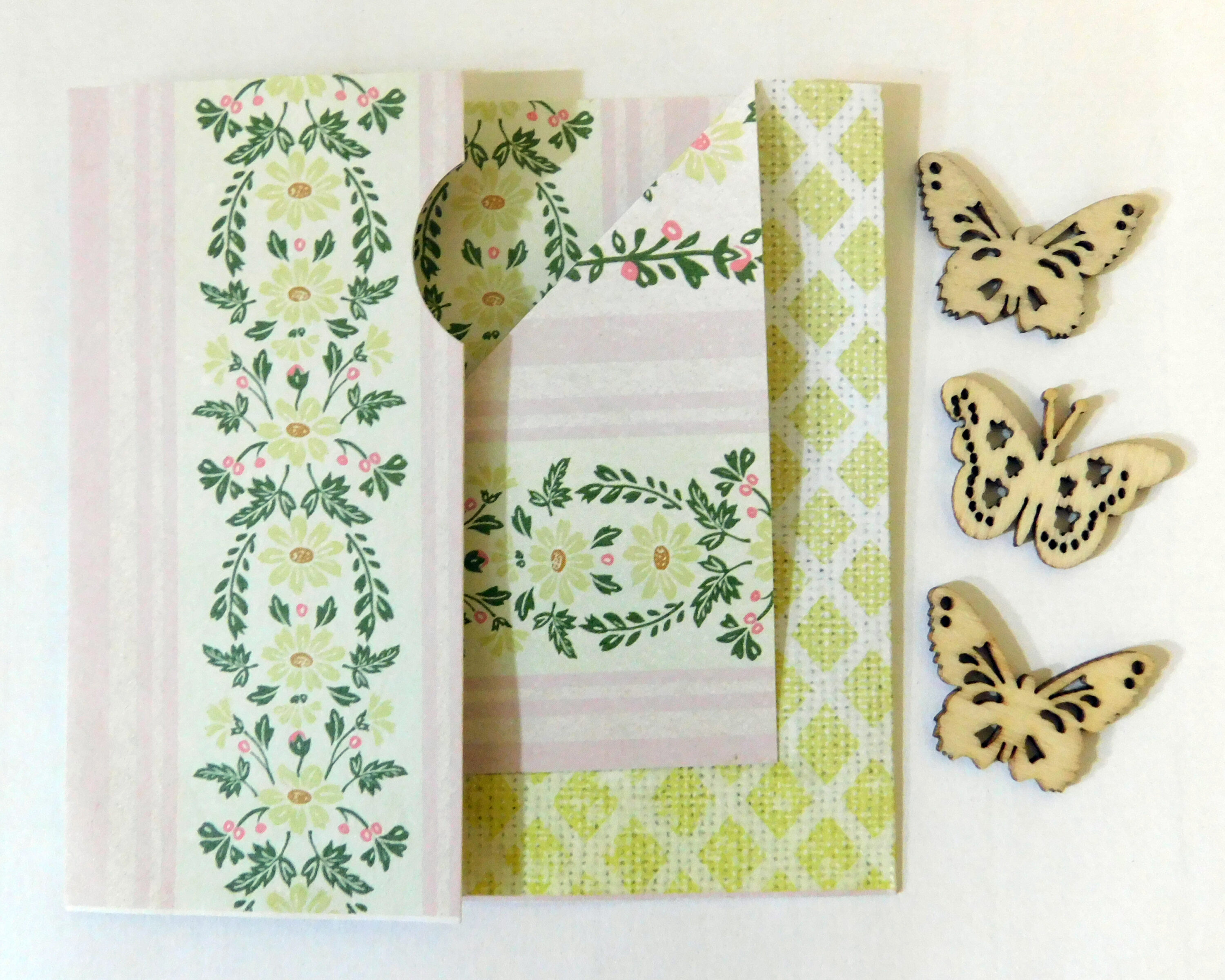Fill and decorate to suit your project whether for seasonal gift giving or anytime. Make a bunch to keep on hand as an easy and fast project to rid paper clutter. If you would like a closure a corner bookmark will suffice while adding a nice touch as an extra little gift.