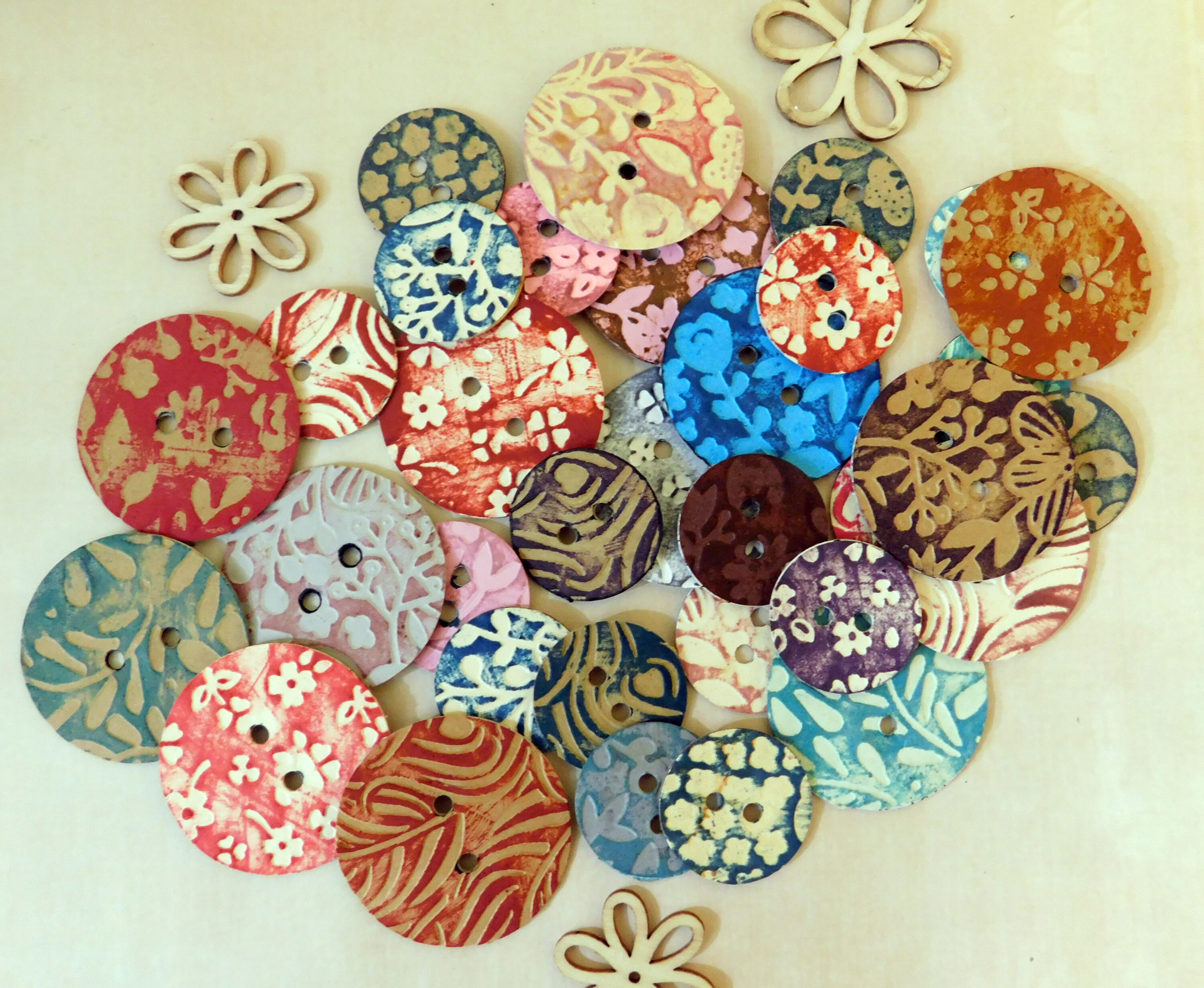 Buttons are one of the easiest DIY paper projects that take a short time to make. These boho buttons are made with embossing folders, scrap paper, packaging, ink and a few common paper punches. The graphic style makes them pop. A simple any day scrap buster project that will get a lot of future use.