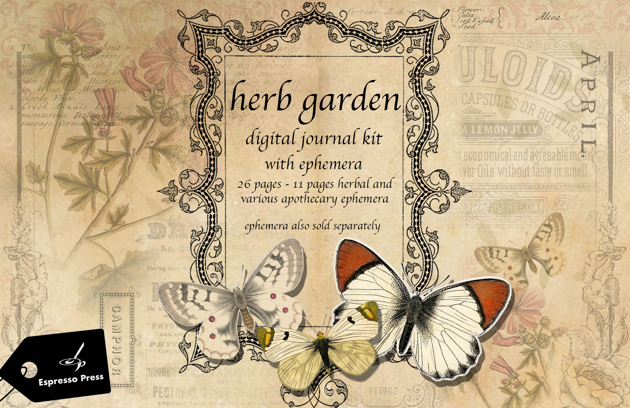 Herb Garden Digital Journal Kit. 26 page digital paper collection includes journal sheets, collage sheet and designs suitable for backside printing, tags, journal cards, envelopes, stamps, tickets, labels and more for junk journals, paper crafting, scrapbooking and more! You'll love the ornate apothecary labels enclosed in simple shapes for easy cutting, use over and over again, some blank to create your own designs with stamps or other embellishments. These herbal digital designs were created from beautiful 17th century plates, 1876 Philadelphia type foundry items and other antique art collections. Approx. 184MB