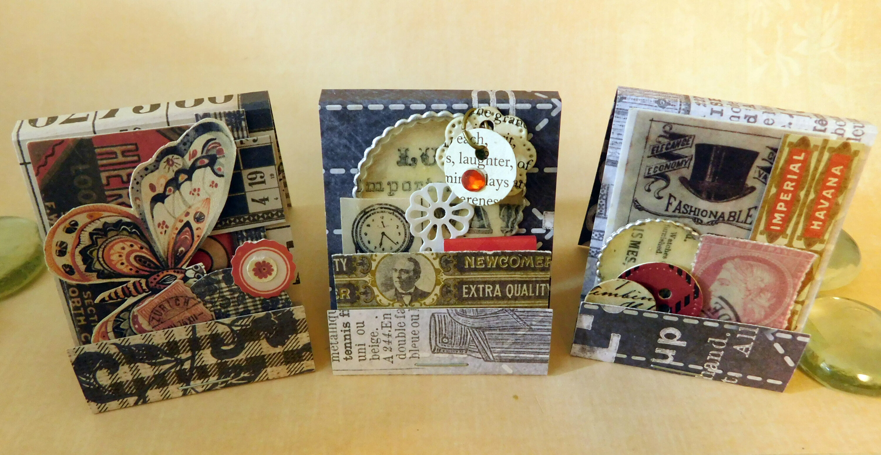 The ideas for this project are endless. Choose a story, theme or holiday. Use ephemera, die cuts, butterflies, animals, fish, shapes, houses, photos, paper dolls or even word layers are just a few ideas to get you started. Try die cuts in lacy shapes to create more shadows and depth. Make some using your favorite papers or that special ephemera so you’ll have your own little keepsake. Layer as many pieces as you can or add a fold or two to your accordion for even greater dimension. Store open or closed.