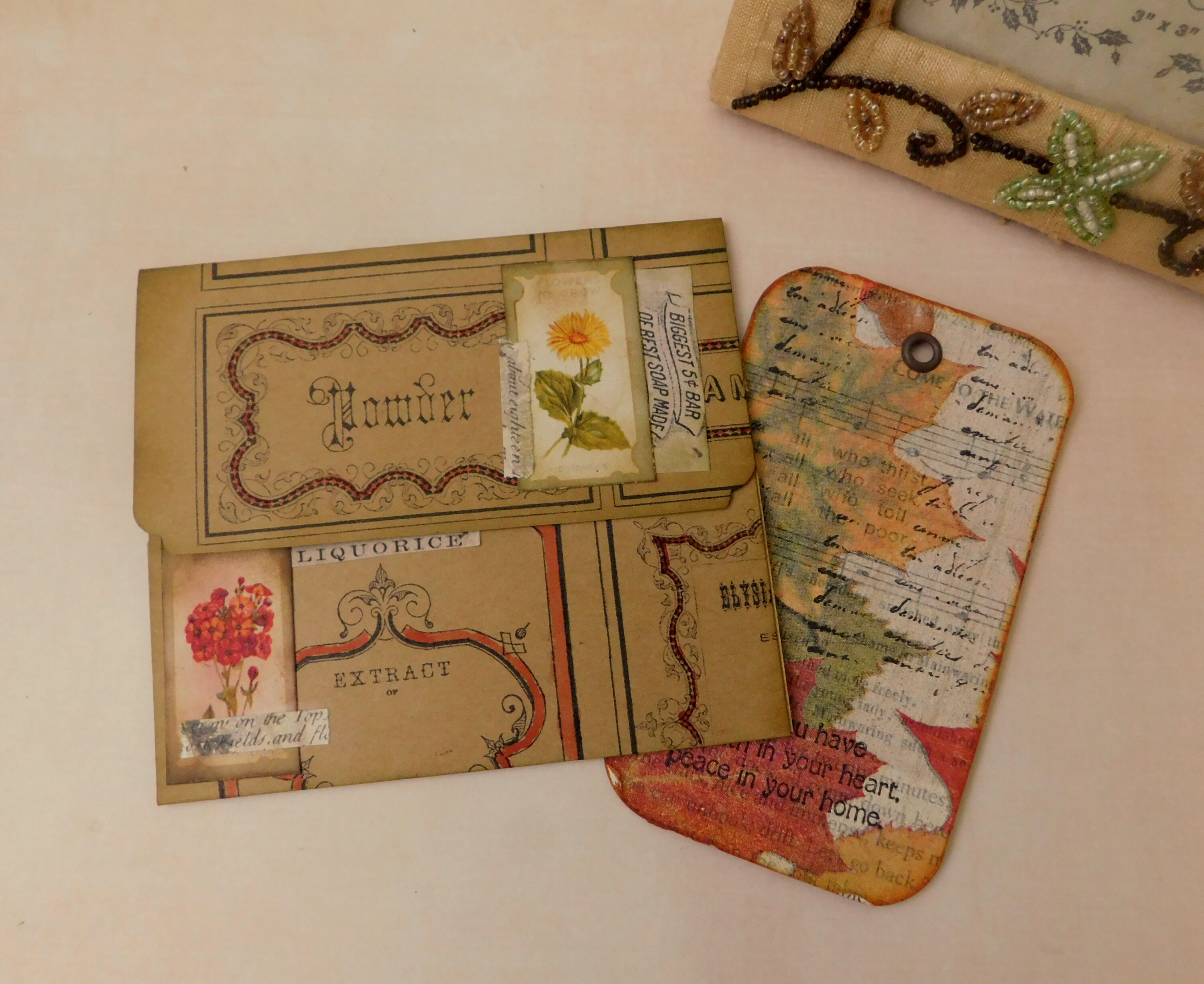 So for this month I’ve just created a little envelope that I saw on SevenPlaza with Antique Apothecary Labels. I thought they would be appropriate as we gather our harvests in preparation for the winter season. It’s an easy project.
