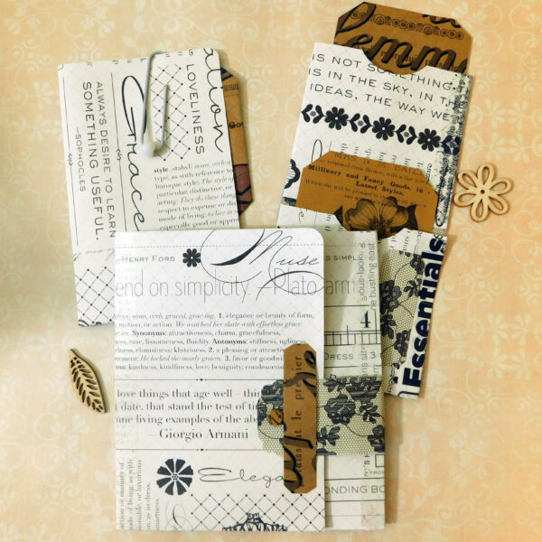 One sheet 12×12’s offer a lot of opportunities for creating and building ephemera or card sets. Make one or two sets of each project and journal making will be a breeze.