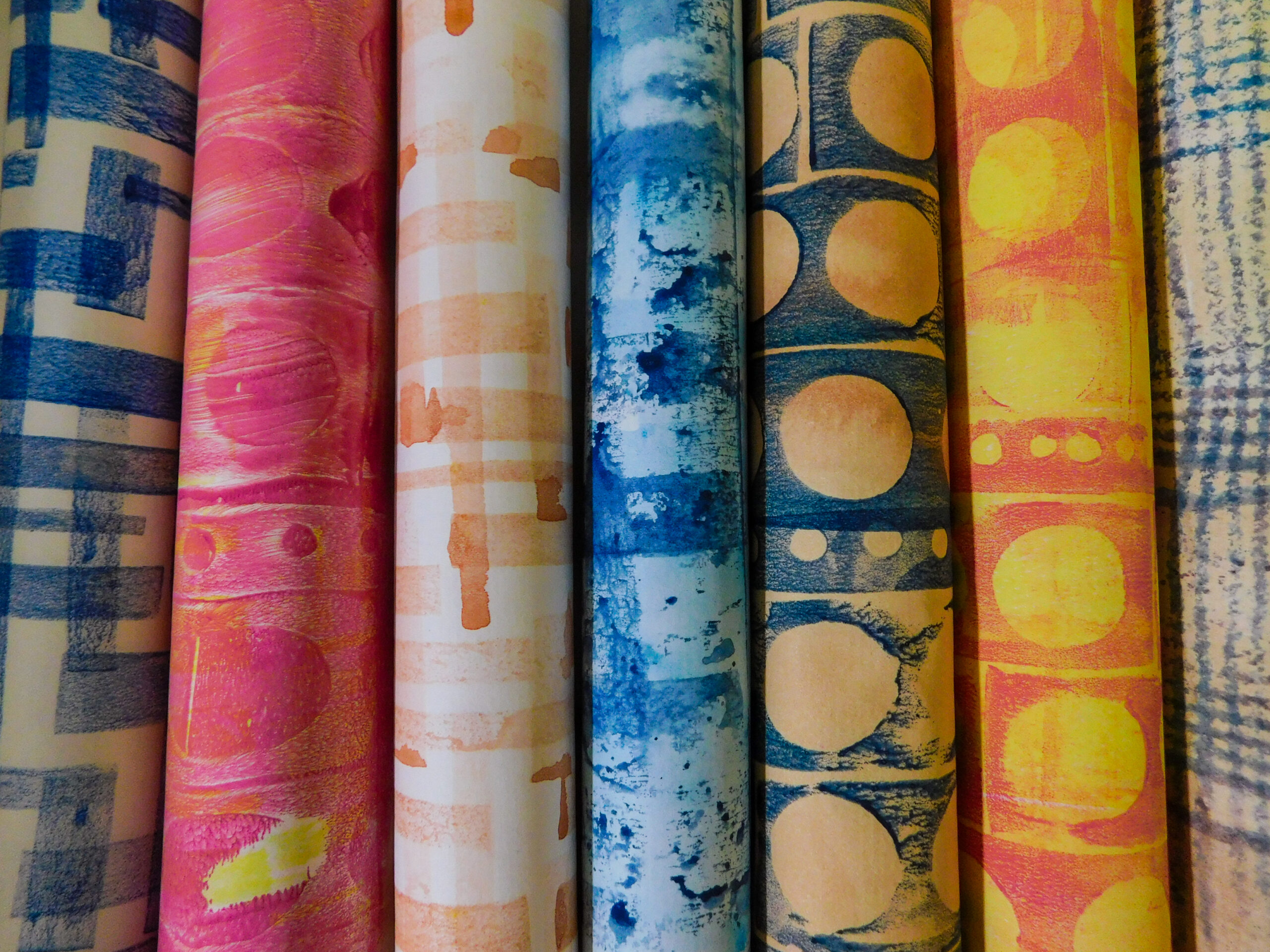 Wrapping Paper Folk Art Leftover Christmas wrapping paper is perfect for making whimsical or primitive folk art. The patterns and