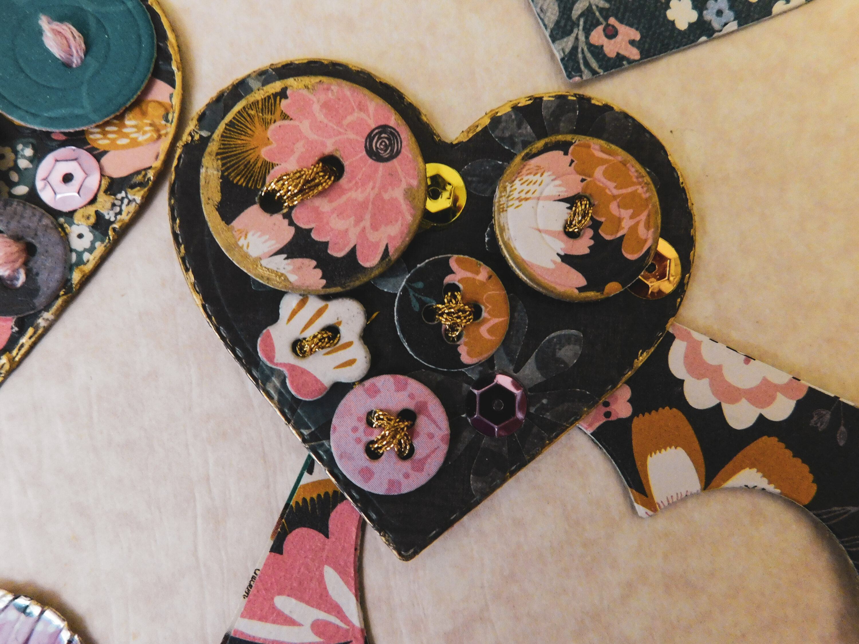 Buttons and Hearts Embellishments Paper buttons offer endless possibility for creativity. These embellishments were inspired by eclectic style jeweled brooches.