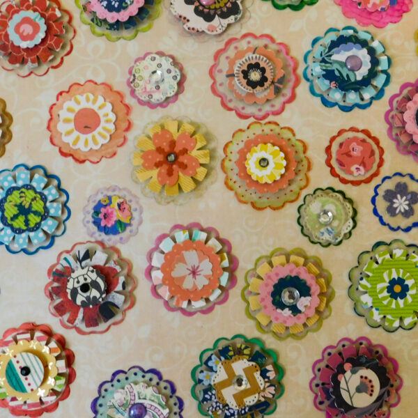 Scrappy Flowers These scrappy flowers come together in a jiffy and can be used to adorn many paper projects. Patterned
