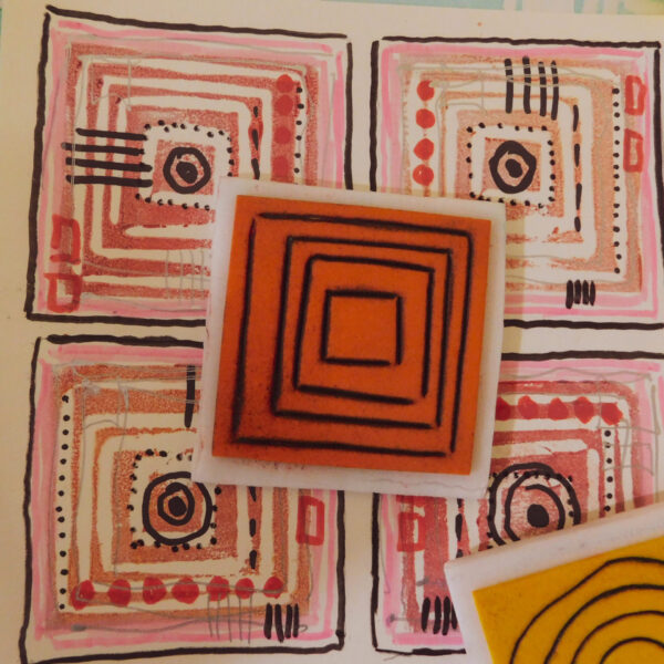 Doodle Stamps Grab some adhesive foam scraps, foam board, a dull pencil, some inexpensive gouache, other media of your choice