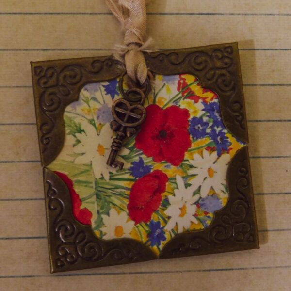 Book Corner Metal Mementos Gather some 3/4" metal book corners and make some embellishments from sentimental ephemera. You can make