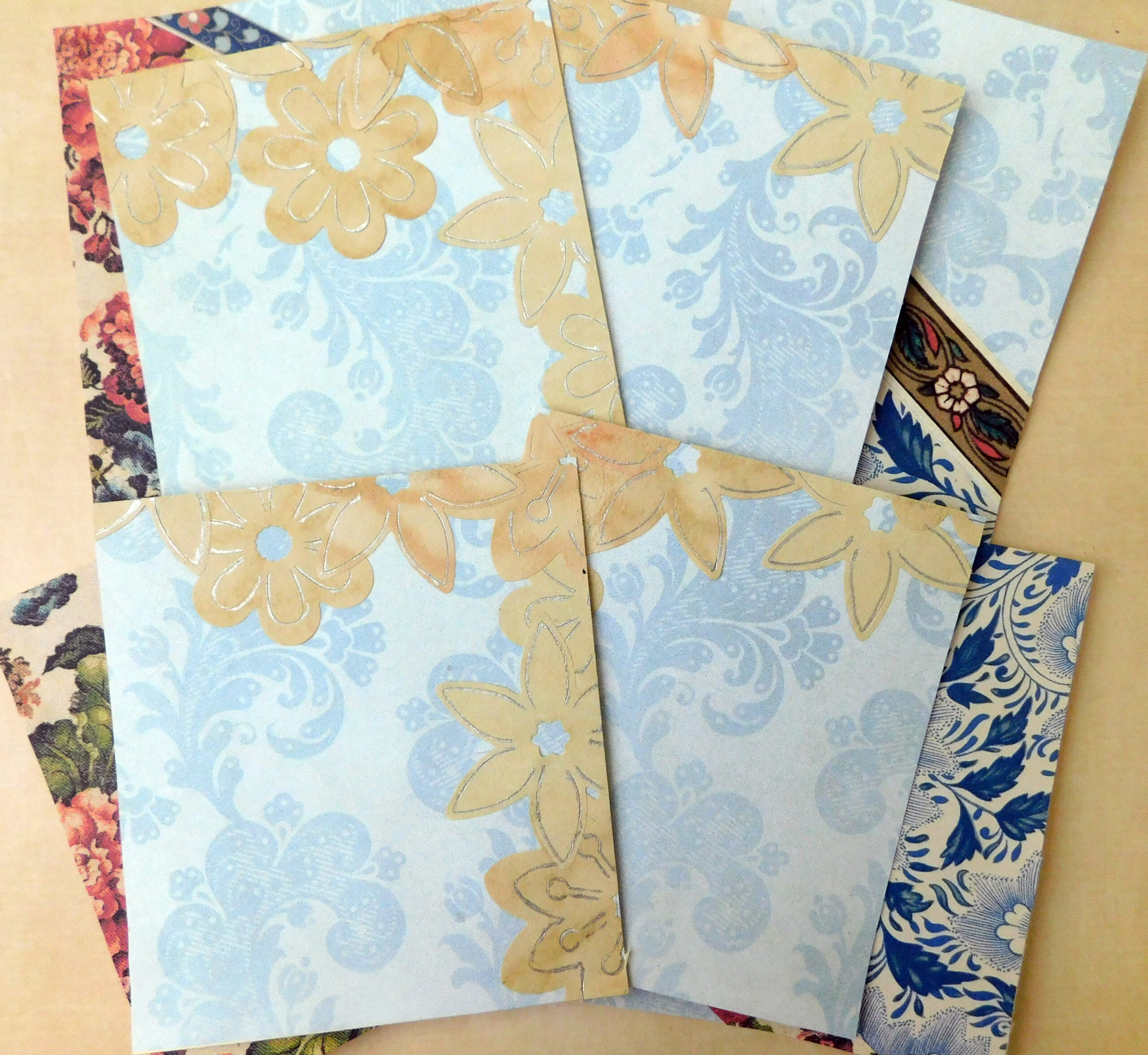 Along with a master board and a few special pieces I think this combination of mass making techniques will greatly speed up the process of completing any journal, large or small for a beginner journal maker who doesn’t quite know where to begin and wants their completed project to look cohesive but unique. Also great for making card sets, postcard sets, photo mats or even ATC sets. I wanted BoHo (fabric pattern inspiration) but of course follow your own style and see what you might come up with.