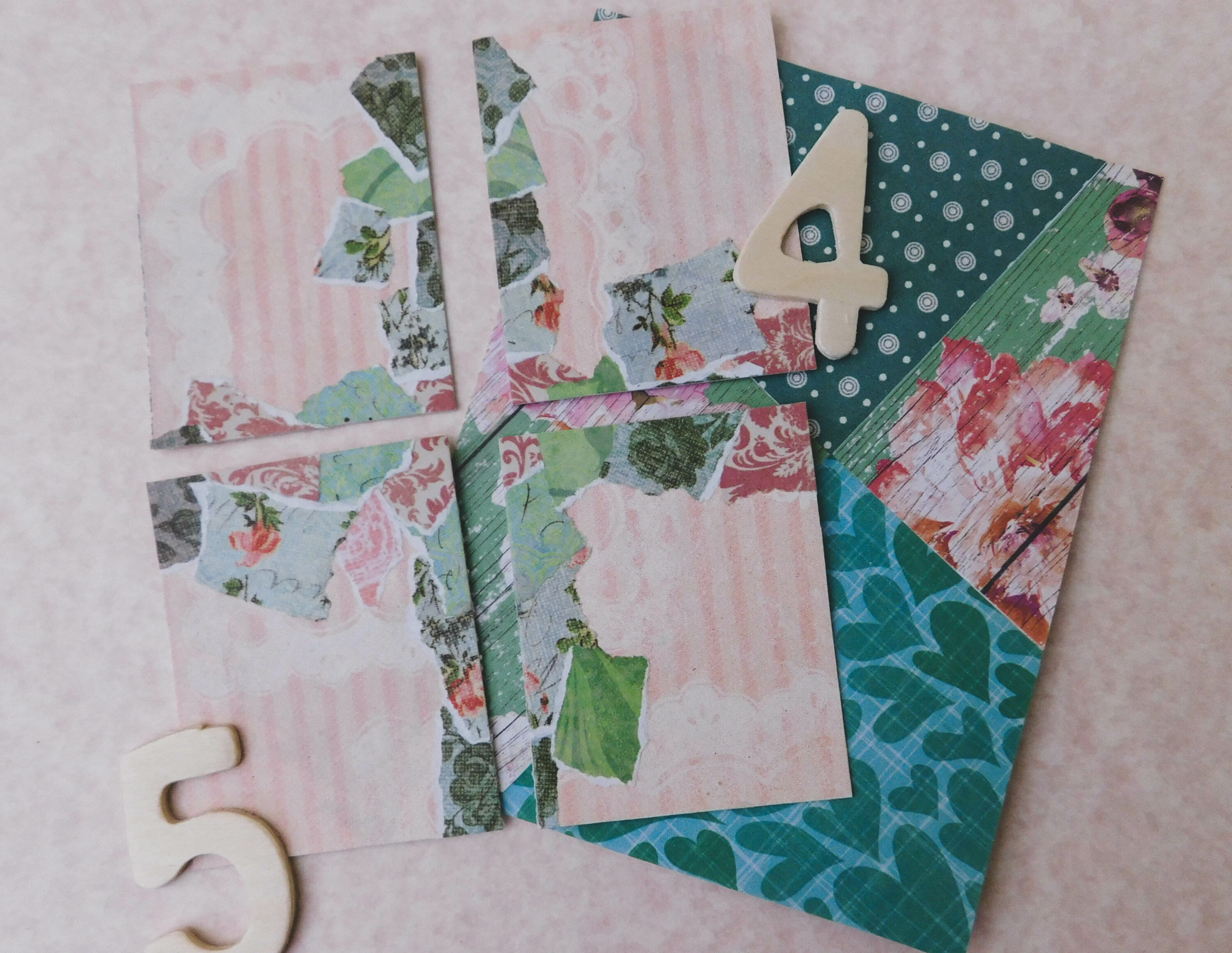 Die cuts, punch shapes or whatever you desire for your motif (stamps, flowers, washi tape, fussy cuts, torn paper, stamps, numbers, letters, stickers. Use your imagination, just remember it will be cut.