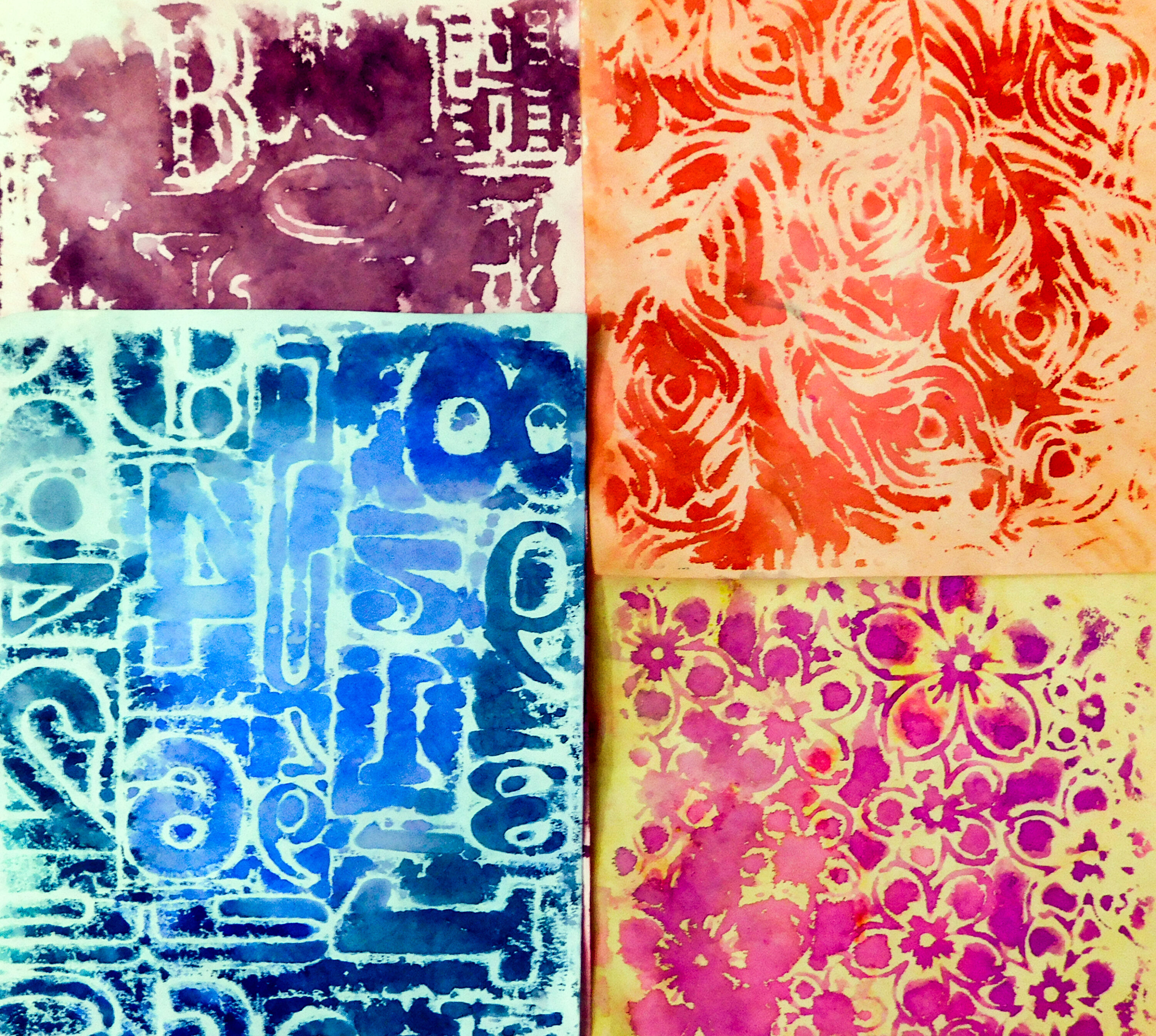 You can save your plates for our next technique. See how many designs you can create and just have fun creating some vibrant backgrounds or collage fodder.