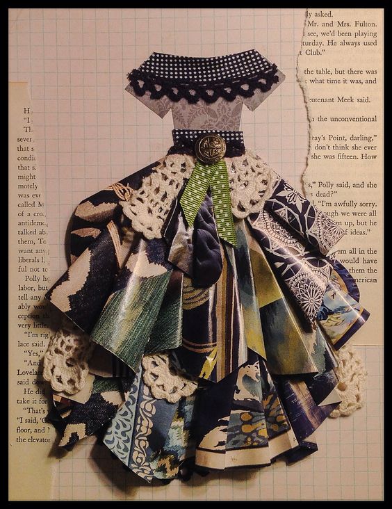 I was going to keep it the size shown and make a mini journal but when I chose this Tim Holtz paper and teamed it up with another paper pack I suddenly realized I could at long last try something I have wanted to attempt for quite a while and that was a scrap paper dress, inspiration below.