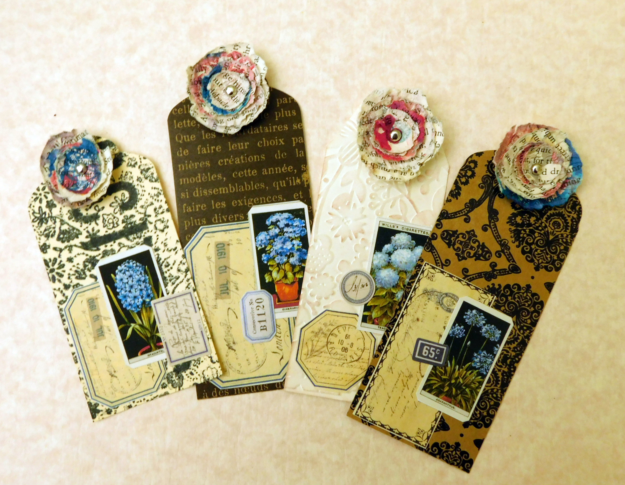 These flowers are fairly flat so they don’t add a lot of bulk for junk journals or card making and will survive in the mail. They add bohemian flair to tags or bookmarks too.